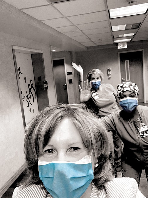The team converted the neonatal intensive care unit (ICU)—with its pod-style environment that previously accommodated babies—into an ICU for adults with COVID-19, Ms. Ellis says, tackling the project like a puzzle.